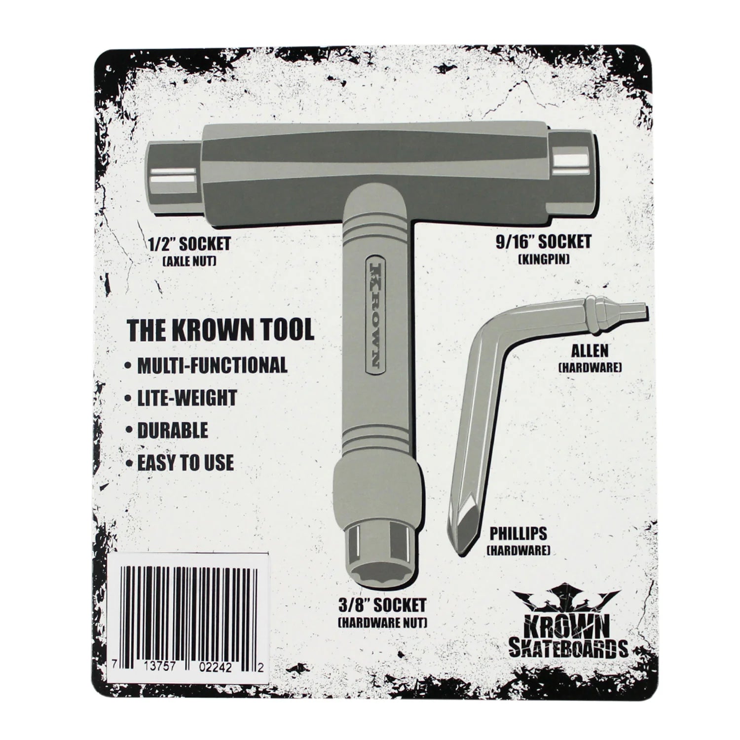 Krown Skate Tool makes adjusting your skateboard fast, easy, and precise. Its classic T-handle design ensures comfort while tightening trucks, wheels, or hardware.